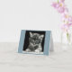 Ein zauberhaftes, schwammiges Kätzchen aus einem zeichnend Kratzerbrett. Dank Angels Retcuing Kritters für den rett dieses Kleinen und seiner Katzenpaare und für die Schaffung einer glänzenden Zukunft durch die Suche einer ewigen Zuhause für ihn. Diese Karte hat einen blauen Hintergrund, der zu den Augen des Kätzchens passt.