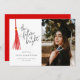 Carte photo moderne et fantaisiste de graduation avec illustration d'un moule rouge avec un texte de typographie écrit à la main qui dit "l'avenir est brillant."
