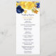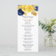 Voici une belle carte de programme de mariage qui comporte une bordure supérieure de fleurs d'aquarelle et de feuillage en bleu marine et jaune or, avec des touches de bleu clair et vert. Votre texte personnalisé est en or bleu foncé et jaune ci-dessous, et il y a beaucoup de place pour votre texte. Le dos de la carte est solide assorti bleu foncé. Cette carte correspond aux invitations de mariage et autres produits mariages dans notre magasin, et utilise des oeuvres de LABFcreations.