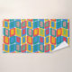 Dieses Handtuchhandtuch-Set hat ein modernes Design von hellen Farben, die abgerundete Rechtecke mit anderen Rechtecken innerhalb von einer Sammlung von Linien gebildet werden.