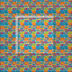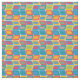 Dieser Stoff hat ein modernes Design von hellen Farben, die abgerundete Rechtecke mit anderen Rechtecken innerhalb gebildet durch eine Sammlung von Linien.