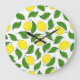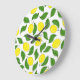 Bright Lemons Green Blätter Pattern Große Wanduhr