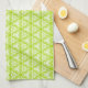 Bündel von aufwändigen, hellen, limatengrünen Wirbel im Dreieck schmücken dieses niedliche Küchentuch