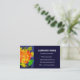 Un carte de visite accrocheur avec un design abstrait orange, jaune et vert sur un arrière - plan bleu foncé, avec lettrage blanc. Prêt pour vous à customiser avec vos propres détails.