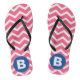 Bright Pink and White Chevron Pattern Monogram Flip Flops