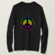 Ein funky, heller Regenbogen Hintergrund mit einem schwarzen Friedenssymbol.
