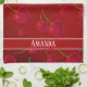 Helles rotes Kirschmuster mit herzförmigen Highlights auf jeder Kirsche. Der Hintergrund besteht aus einem roten Farbverlauf mit dunkelrotem Punktmuster. Diese hellroten Kirschen sind reif für die Ernte!