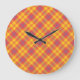 Une horloge ronde chic, avec un motif Plaid en rouge vif, jaune et bleu. Faisant partie de la collection Posh & Painterly 'Rangoli', ce motif carrelé peut être ajusté pour s'adapter à n'importe quelle horloge.