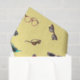 Niedliches Geschenkpapier mit Brillen und Sonnenbrillen auf sommergelbem Hintergrund.