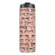 Dieser thermische Tumbler verfügt über eine Vielzahl von verschiedenen Brillen und Brillenrahmen in schwarz-weiß auf einem blassrosa.