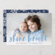 Festive Hanoukka carte photo présente votre photo horizontale ou paysagère préférée en fond saigné, avec "brillant brillant" recouvert de la typographie de brosse en lettres bleues. Personnalisez l'avant de la carte avec vos noms et un court message de vacances, et ajoutez trois photos supplémentaires à l'arrière dans une mise en page collage sur un arrière - plan à motif de flocon bleu marine, ainsi qu'un message personnel personnalisé. Pour un dossier vide, il suffit de supprimer le calque mat modèle photo et blanc.