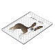 Desteis originelle Cartoon-Illustration einer niedlichen Blinde und weißen Fellfarbe Boston Terrier Rasse Hund. Der Hintergrund weist ein Muster grauer Hundepfoten auf. Es gibt auch einen personalisierbaren Textbereich für einen Titel.