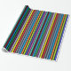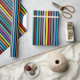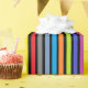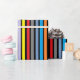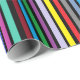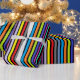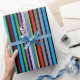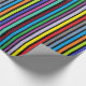 Geburtstagsgeschenkpackung mit roten, blauen, lila, grünen, orangen, Limonen und gelben Streifen.