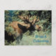 Bulle Elch British Columbia Postkarte. Bull Elch, der aus den Bäumen hervorgeht.