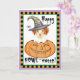 Senden Sie Halloween Grüße mit dieser Karte eines niedlichen Bretagne Welpen Hexe in einem lächelnden Jack-o-Lantern. Ideal für Kinder jeden Alters, die Brittanys und Halloween Liebe haben. Viel Glück!