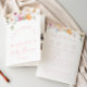Ces livrets de jeux de baby shower présentent un design floral fleur sauvage à ressort d'aquarelle. L'en-tête de script est une image qui ne peut pas être modifiée. Tous les autres textes sont entièrement modifiables et les images peuvent être remplacées par les vôtres. Pour obtenir de meilleurs résultats, recadrez vos images dans un carré avant de les télécharger sur Zazzle. Pour une personnalisation plus avancée de cette conception, il suffit de cliquer sur le bouton "Customiser" ci-dessus. Veuillez noter que le livret est livré à plat. Vous devrez plier la page en deux pour créer le livret.