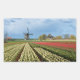 Un autocollant photo en angle d'un paysage avec un moulin à vent et tulipes jaunes et rouges sous un ciel nuageux dans la campagne hollandaise sur un beau printemps dans la région de Bulb, la Pays-Bas.