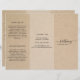 Brochure rustique triplée avec un arrière - plan en papier faux brun. L'avant a votre nom d'entreprise avec des swashes dans une police de script manuscrite élégante avec votre titre ou service. Le panneau arrière contient vos coordonnées et le panneau intérieur comporte deux en-têtes et des zones de texte. L'intérieur a plusieurs modèles pour des informations sur votre entreprise sur les panneaux extérieurs et une liste de prix dans le panneau central. Ce design simple et féminin est idéal pour une entreprise artisanale artisanale.