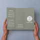 Ce logo d'entreprise propre, vert sauge triple brochure, présente une couleur verte fraîche et apaisante, offrant un design professionnel mais accueillant. Il met en valeur votre logo et les informations clés de votre entreprise dans un agencement bien organisé, ce qui le rend idéal pour les entreprises à la recherche d'un look moderne et sophistiqué avec une touche de chaleur. Parfait pour une variété d'industries.