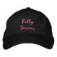 Casquette noir brodé avec des lettres gothiques danseuses du ventre. Changez la couleur du fil et du casquette à votre goût.