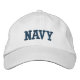 Casquette en blanc avec texte brodé de marine. Customisez cet objet ou achetez tel quel.