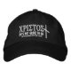 Design brodé blanc sur casquette noir réglable. Cristos est écrit en grec pour la pièce sur les mots, "Il n'est pas grec pour moi." Exclusivement à partir de Biblewhiz.com.