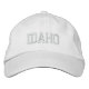 Un Casquette réglable de base brodé avec le texte (personnalisable) Idaho. Sélectionnez la couleur et le style du casquette et du texte de votre choix.