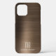 Bronze Brown Metallic Monogram iPhone 12 Fall. Dieses elegante, braune, gebürstete Metallgehäuse aus Bronze, das iPhone 12 mit Ihrem Monogramm und Namen ganz individuell gestalten.