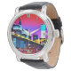 Vintage Männeruhr mit schwarzem Lederarmband