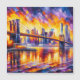 Die Brooklyn Bridge, ein architektonisches Wunder, das 1883 vollendet wurde, symbolisierte industrielle Innovation und städtische Eleganz. Die breiten Gewölbe und Stahlseile verbinden Brooklyn mit Manhattan und verkörpern zeitlosen Glamour und historische Bedeutung.Auf diesem wunderbaren Kronplatz setzt der Acrylstil mit goldenen und lavendelfarbenen Tönen ein.