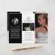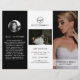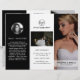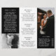 Moderne Fotografie-Trifold-Broschüre mit eleganten Schwarz-Weiß-Fotos. Die Frontblende hat ein volles Foto mit zwei Textzeilen über einem schieren Banner am unteren Rand. Das Außenfenster hat Ihr Firmenlogo und eine Textzeile über einem horizontalen Foto und Ihre Kontaktinformationen unten. Fügen Sie Ihr Portrait und Ihre Biografie der Tafel hinzu, die in die Broschüre einklappen wird. Das Innere hat ein Bild auf den links und rechten Paneelen mit einer Vorlage für Informationen über die verlassen, Ihre Pakete in der Mitte und eine A-la-carte Preisliste auf der rechten Seite. Diese berufliche Dreierbroschüre eignet sich perfekt für Hochzeitsfotografen.