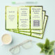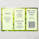 Broschüre für den Flyer von Kleinunternehmen, um beiderseits individuell zu gestalten und zu dritt zu falten. Der naturbelassene Hintergrund ist grünes Gras mit Blume und Sonnenschein. Der gesamte Text ist dunkel lila. Jede Seite dieses 5x8-Formatpapiers hat drei Abschnitte mit Vorlagen. Fügen Sie auch ein Logo, QR-Code, und / oder Foto in den Bereichen zur Verfügung gestellt. Wenn Sie nicht gewollt haben, einen oder mehrere der Bildhalter zu verwenden, entfernen Sie diese, indem Sie zum "Bearbeiten in Design-Tool" gehen, das Sie durch Scrollen zum unteren Rand des personalisierbaren Bereichs finden. Wählen Sie im Designbereich das Bild aus, indem Sie es anklicken, und klicken Sie dann auf das Symbol "Mülleimer" für das Bild. Wenn Sie die Papiergröße ändern, kann das Design dadurch verändert werden, dass es nicht richtig passt. Kontaktieren Sie mich, wenn Sie Hilfe benötigen.