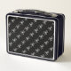 Mittagsschachtel mit lustigem Skelett auf schwarzem Hintergrund