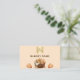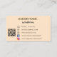 Ein weich pfirsichfarbener Hintergrund. Die Einrichtung besteht aus einem Korb mit Brot und Croissants. Personalisieren und fügen Sie Ihr Firmenlogo und den Namen auf der Vorderseite. Zurück: Vorlagen für Ihren Namen, Titel, Telefonnummer, E-Mail- und Website-Adresse, Ihren eigenen QR-Code für Ihre Website oder Ihr Social-Media-Konto. Facebook und Instagram Icons/account.