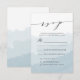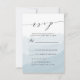 Nos élégantes cartes de réponse de mariage Brouillard d'aquarelle présentent un fond lavé d'aquarelle bleue avec une police de calligraphie écrite à la main. Personnalisez les cartes de réponse de mariage chic avec vos détails de mariage et vos options de dîner.