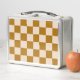 Checkerboard pattern with alternating brown and beige squares, arranged in a grid. The design is uniform and evokes a sense of order and symmetry.