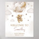 Brown Balloon Bear Baby Dusche Willkommen Poster