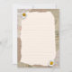 Schöne Vintage Noten in Beige- und Brauntönen, mit Blüten und Briefmarke im Hintergrund dekoriert. Füllen Sie die Zeilen mit Ihren eigenen Notizen oder jedem anderen Text.