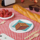 Ein brauner Würfel Gebäude-Block. Dieses Design wirkt auf diese Paper-Teller sehr effektiv