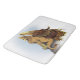 Ein brauner Griffin sitzt in einer Klippe an einem blauen Himmelstag.