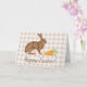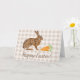 Brown Hare And Carrots Beige Gingham Happy Easter Karte