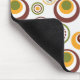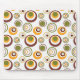 Dieses Mauspad hat ein modernes Design von konzentrischen Kreisen in Gold, Grün und Braun auf weißem Hintergrund.