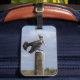 Eine braune Pelikanlandung auf einem Pfosten an einem bewölkten Tag.