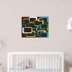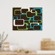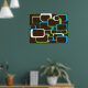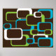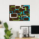 Ein farbenfroh, grün, weiß und türkisblau inspiriert Retro-Quadrat mit schokoladenbraunem Hintergrund auf einem Plakat