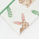 Destei’s watercolor pattern featuring a brown bunny with extra long ears and pink inside them is surrounded by green leaves and botanical foliage. The repeating design creates a woodland inspired look with natural tones and hand painted details. Perfect for a child’s nursery, the bunny illustration also brings a seasonal touch for Easter. A personalizable text area makes it ideal for adding a name, family name or custom message like Happy Easter.
