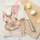 Destei's watercolor illustration of a cute brown bunny with extra large ears on a beige background color. There is also a personalizable text area for a name or other custom text. This design is ideal for Easter!