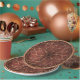 Ein erdgetöntes rotationelles Fraktal mit hellen Schleifen auf mittlerem und dunkelschokoladenbraunem Hintergrund. Fügen Sie Ihren eigenen Text hinzu.