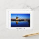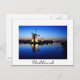 Carte postale des moulins à vent historiques illuminés au crépuscule pendant l'Heure Bleue avec réflexion dans l'eau dans un paysage à Kinderdijk, la Pays-Bas avec une bordure blanche et le texte : 'Holland'.