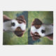 In einer Ölfarbe abgebildet ist ein brauner und weißer Border Collie Welpe namens Bruce.