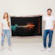 Eine blaue und rote Fraktal Interpretation des Physikbegriffs der Teilchenwellendyalität. Fügen Sie Ihren eigenen Text hinzu.